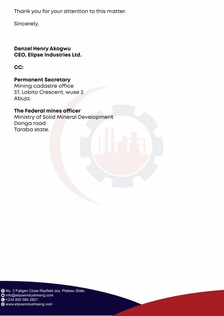 However, advising Elipse to officially lodge its complaint to the Ministry of Solid Minerals, the mining company adhered in a letter cited by our correspondent on Thursday.